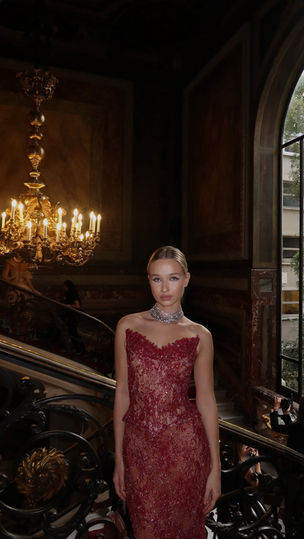 The collection is a reflection of a modern reinterpretation of 19th century Parisian artistry. The evening dresses featured luxurious and heavy materials popular in the 19th century, but with a modern twist.